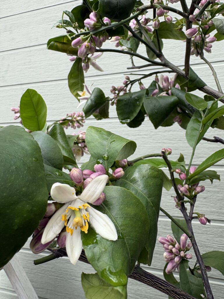 レモンの木の花が咲きました。