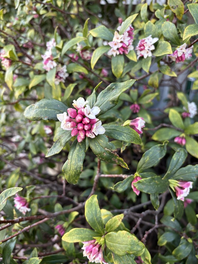 道沿いにもう終わりそうな沈丁花の花が咲いているのを見つけました。